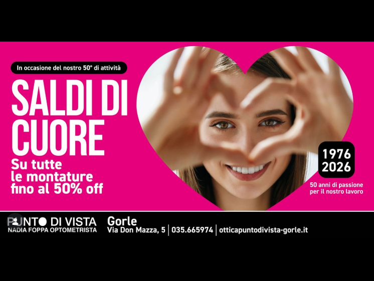Per festeggiare questo importante traguardo, oggi celebriamo con i nostri SALDI più amorevoli di sempre, con promozioni speciali dedicate ai nostri clienti su occhiali da vista, occhiali da sole, montature e soluzioni selezionate.