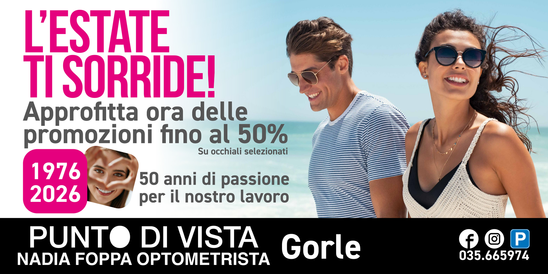 Siamo orgogliosi di celebrare mezzo secolo al tuo fianco, un traguardo che testimonia la nostra dedizione alla tua vista e al tuo stile. Da 50 anni, il nostro impegno è garantirti sempre la migliore soluzione, unendo qualità e design. Per ringraziare la fiducia di tutti voi, vecchi e nuovi clienti, abbiamo preparato un'iniziativa estiva imperdibile!